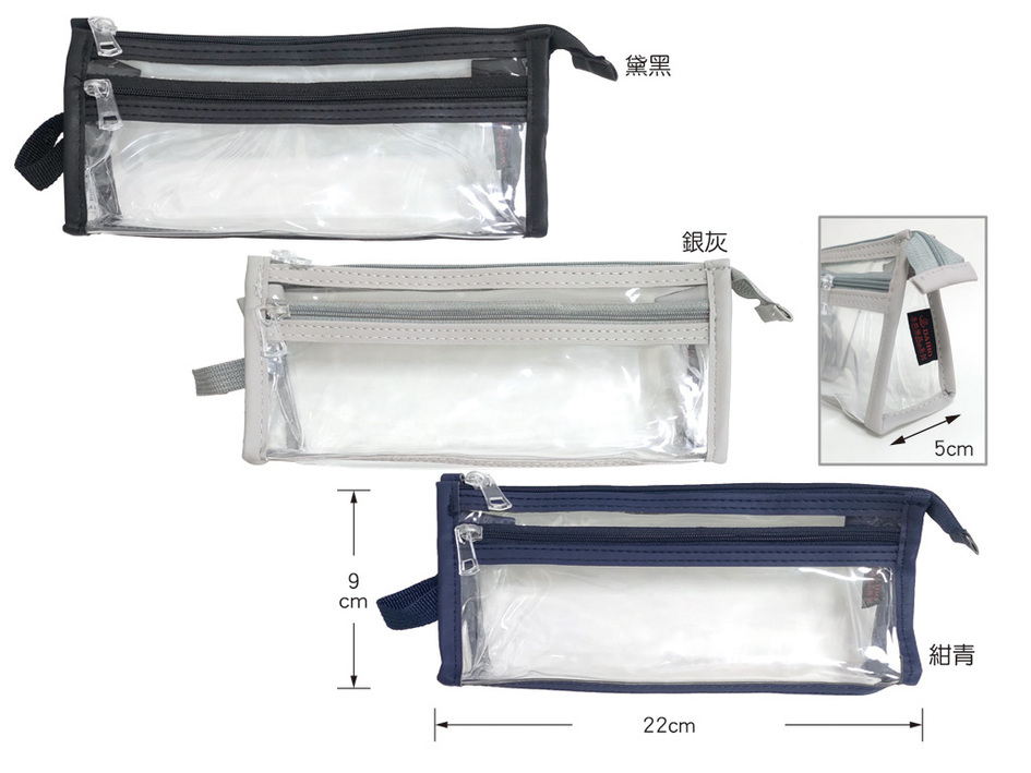 筌翔國際文具禮品-專業設計製作生產行銷批發零售供應商 -- 本色透明大三角雙層筆袋