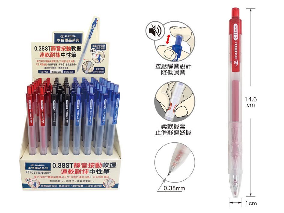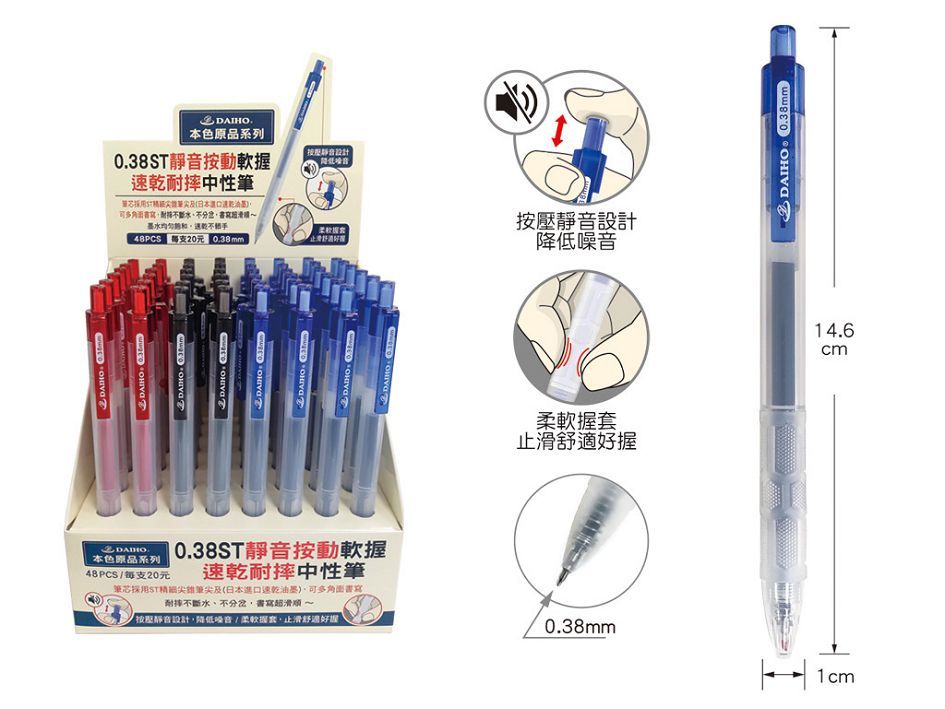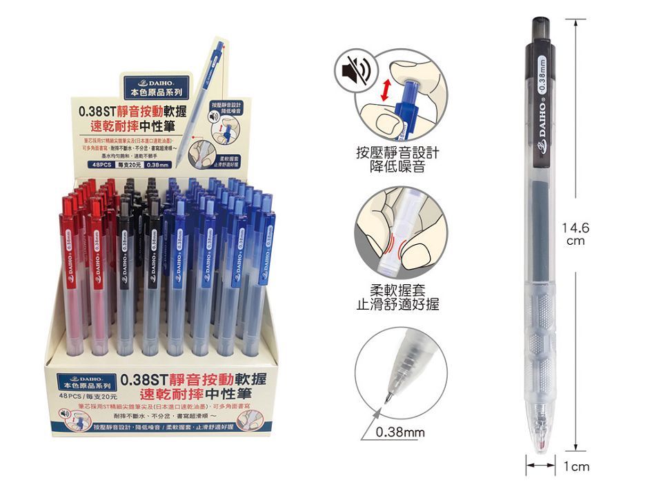 筌翔國際文具禮品-專業設計製作生產行銷批發零售供應商 -- 本色0.38ST靜音按動中性筆-藍/黑/紅