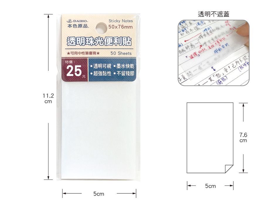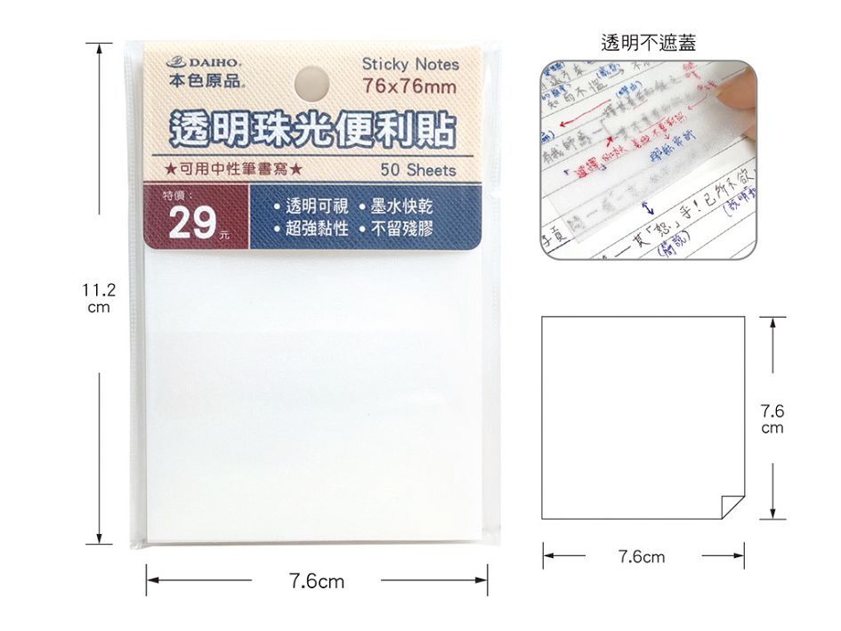 筌翔國際文具禮品-專業設計製作生產行銷批發零售供應商 -- 本色透明珠光便利貼(三種尺寸)